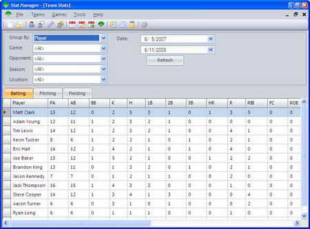 Stat Manager v2.0.3.0 Win2kXPVista 英文正式版(簡單易用的棒球球隊管理記錄軟體)