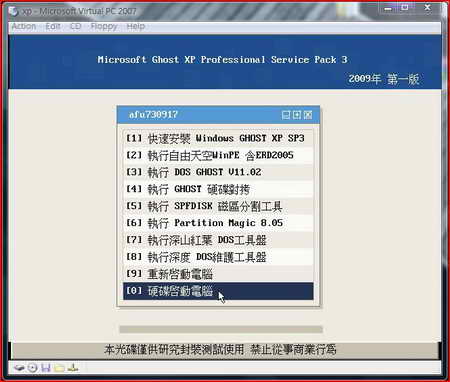 afu730917-GHOST XP SP3 繁體中文快速裝機專業版 2009年第一版 (dvd1片裝)